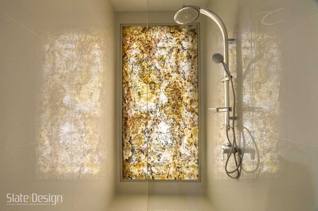 A világítás szerepét sem szabad alábecsülni, sokan teljesen elfeledkeznek róla, pedig nagyban meghatározza a szoba hangulatát. Az elegáns fürdőszobák hangulatát a nem harsány, mégis minden részletet megfelelően megvilágító fények adják. Egy jól megválasztott mennyezeti lámpa a szoba fókuszpontja is lehet, míg a rejtett LED-szalagok vagy falba süllyesztett fényforrások modern, letisztult megjelenést biztosítanak. Igazán látványos hatást érhetünk el, ha ötvözzük a világítást az átlátszó kőfurnérral, mely a háttérmegvilágítással teljesen egyedivé teszi a fürdőszobát.